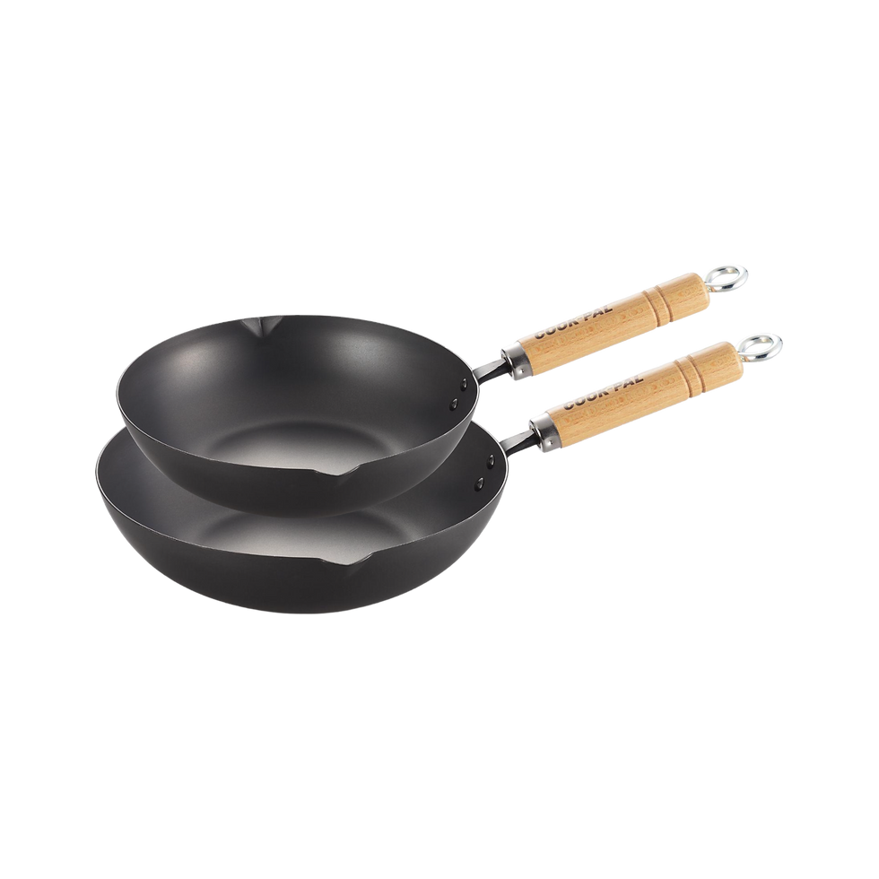 Yoshikawa Cook-Pal Ren Deep Frying Pan Carbon Steel - Duo Set of 2 | Made in Jap